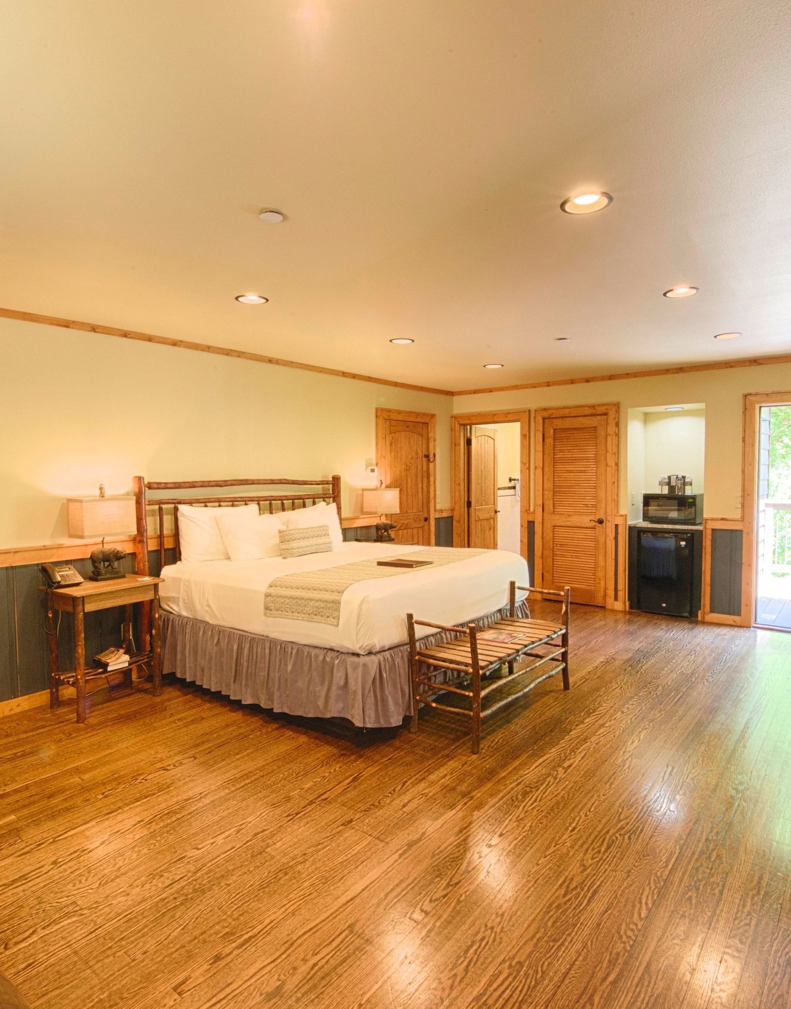 The Cheoah Cabin, named in honor of the rushing river in front of the lodge, features three spacious units, each with a private porch and scenic views, offering a perfect blend of comfort and nature.