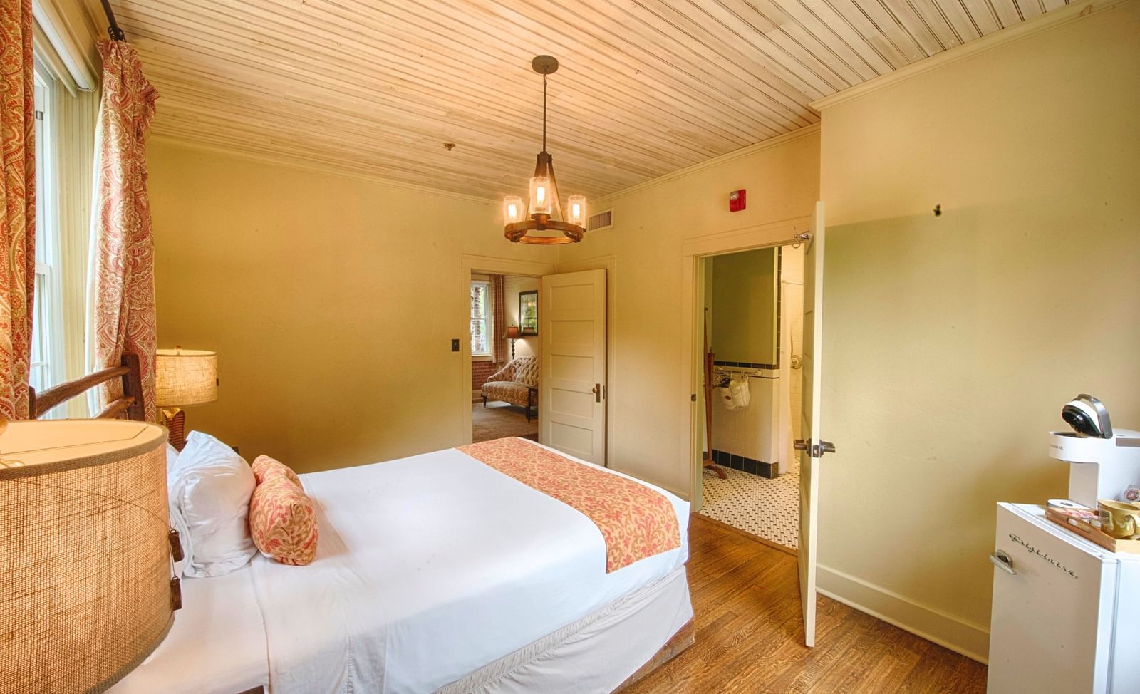 Situated on the third floor, our spacious two-room suite is perfect for two guests. Enjoy a plush king size bed, a separate living area, and breathtaking views of the mountains and Cheoah River. Relax in the jetted tub and soak in the serenity!
